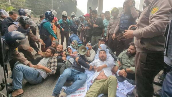 রাজধানীর কাওরানবাজারে মোবাইল ফোন ব্যবসায়ীদের সঙ্গে পুলিশের ধাওয়া-পাল্টা ধাওয়া